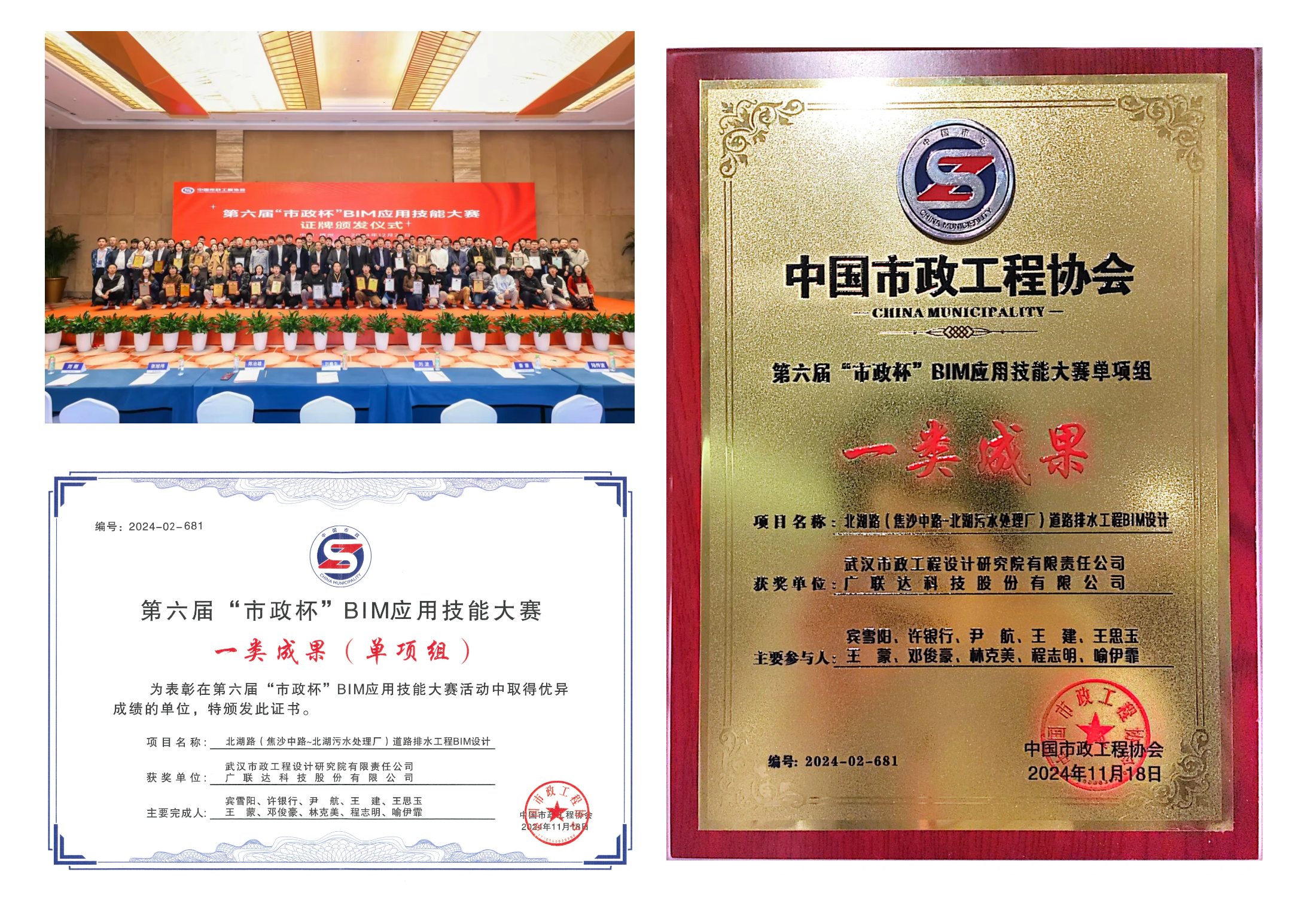 ? ? 中國市政工程協(xié)會“2024市政基礎設施行業(yè)BIM高峰論壇暨第六屆'市政杯’BIM應用技能大賽成果發(fā)布會”在福州隆重召開。武漢市政院《北湖路(焦沙中路~北湖污水處理廠)道路排水工程BIM設計》項目從全國市政行業(yè)686個參評項目的激烈競爭中脫穎而出,榮獲單項組(設計)一類成果(國家級一等獎)。該獎項為中國市政行業(yè)BIM最高獎項。