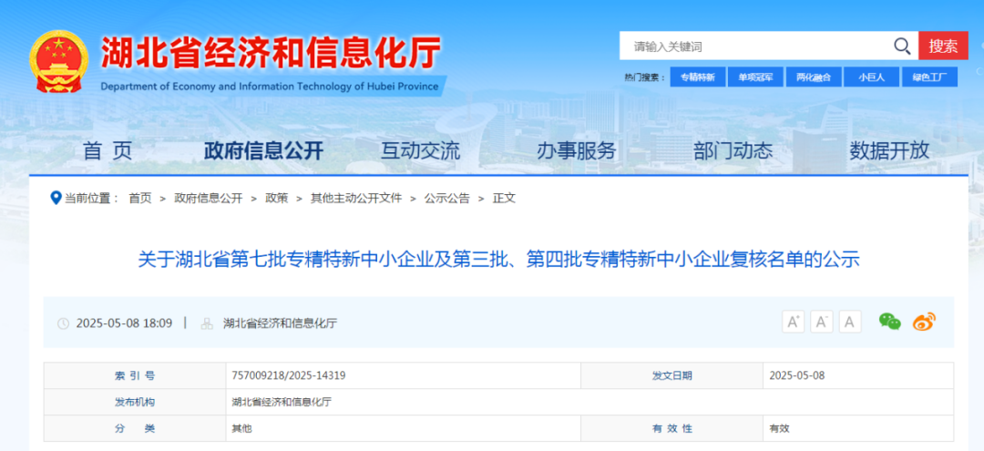 專精特新中小企業(yè)公示名單