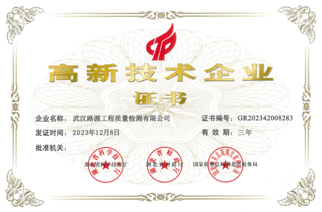2023年,再次順利通過湖北省“高新技術企業(yè)”復審認定,這一成就充分展示了路源檢測公司在科技創(chuàng)新、科技研發(fā)、知識產(chǎn)權及產(chǎn)品服務等方面的綜合競爭力。