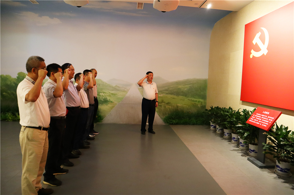 從哪里來,到哪里去。翻開風(fēng)云激蕩的紅色篇章,在歷史中汲取力量,為的是不忘初心、牢記使命、永遠(yuǎn)奮斗。氣勢恢宏的序廳,穹頂上的鐵錘鐮刀分外醒目,巨幅黨旗如鮮血浸染。公司黨委書記蔡輝帶領(lǐng)其他領(lǐng)導(dǎo)班子成員一道重溫入黨誓詞,他們舉起右拳、莊嚴(yán)宣誓。“我志愿加入中國共產(chǎn)黨,擁護(hù)黨的綱領(lǐng),遵守黨的章程……”他們的聲音交匯在一起,一字一句,句句鏗鏘。在錚錚誓言中,大家仿佛再一次真切體會到早期共產(chǎn)黨人艱苦卓絕的探索和奮斗。