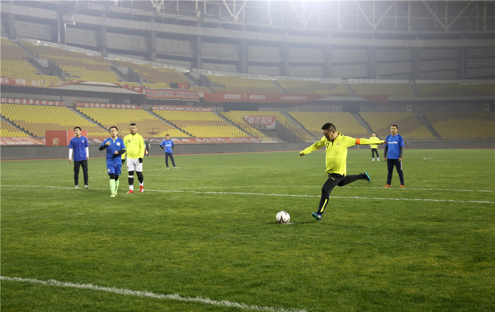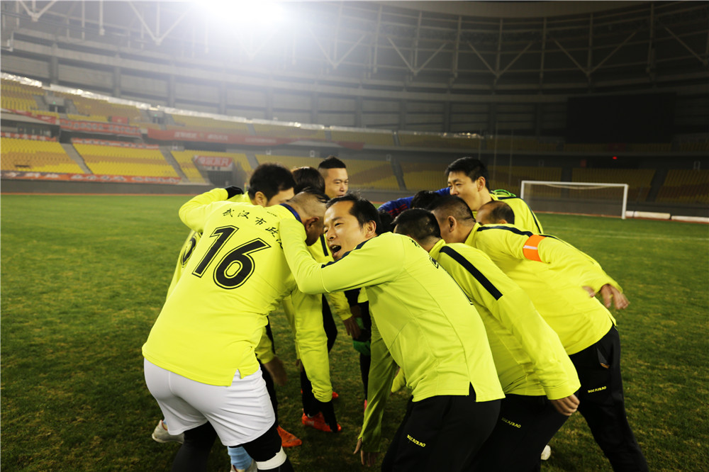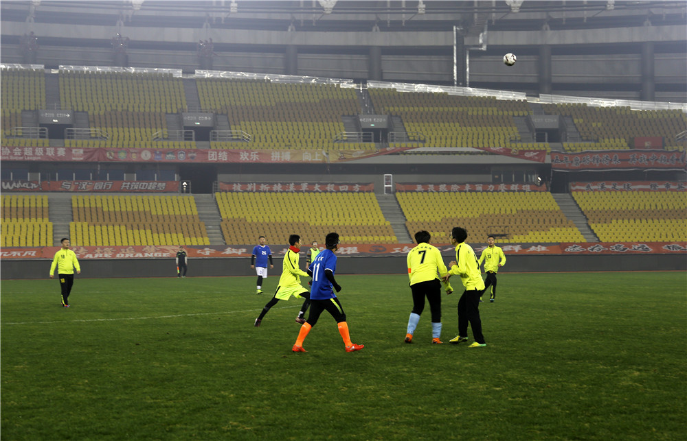 五環(huán)體育中心是武漢市為舉辦第七屆世界軍人運(yùn)動會新建的規(guī)模最大的比賽場館,曾承擔(dān)了軍運(yùn)會足球、乒乓球、水上救生等項(xiàng)目的比賽。盡管軍運(yùn)會已經(jīng)過去近三個(gè)月了,但如今置身其中,仍然能感受到軍運(yùn)賽事帶來的澎湃與激情。或許這種情緒也感染著場上的隊(duì)員們,他們從一開始就迅速進(jìn)入了比賽狀態(tài),身穿藍(lán)色球衣的東西湖區(qū)聯(lián)隊(duì)在開場不久便率先破門攻入一球,但公司的隊(duì)員們?nèi)匀环€(wěn)扎穩(wěn)打,很快就將比分扳平。重回同一起跑線的兩隊(duì)在隨后的比賽中更是你來我往,展開了高質(zhì)量的攻防大戰(zhàn),比分交替領(lǐng)先,最終雙方又各進(jìn)四球,在一場精彩的進(jìn)球大戰(zhàn)后以5:5的比分握手言和。