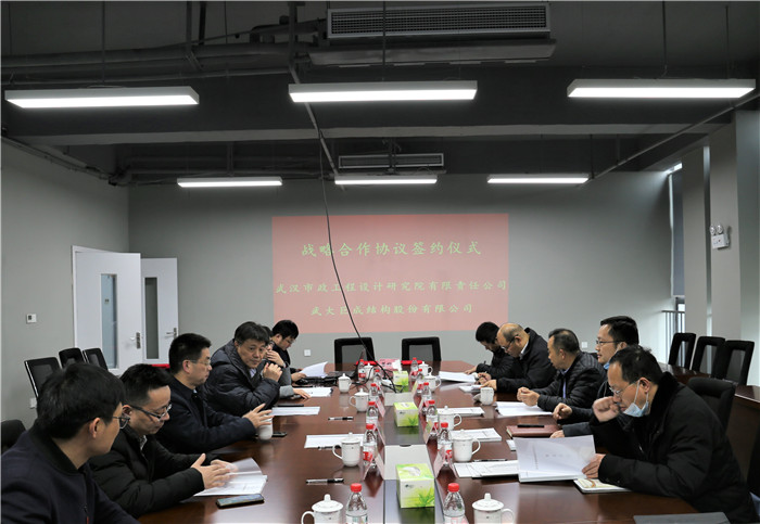 2021年3月3日下午,武漢市政設計院與武大巨成結構股份有限公司在漢簽署戰(zhàn)略合作框架協(xié)議,雙方將充分發(fā)揮各自優(yōu)勢,創(chuàng)新合作模式,拓寬合作渠道,在結構加固技術領域,針對新設備、新材料、新工藝的應用開展交流合作。武漢市政設計院總經(jīng)理姚華、副總經(jīng)理陳建斌、總經(jīng)理助理呂錦剛與武大巨成公司董事長高作平、總經(jīng)理萬雄衛(wèi)、副總經(jīng)理廖杰洪、副總經(jīng)理張暢及相關人員出席了簽約儀式。