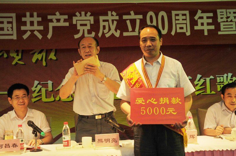 在莊嚴(yán)的《國(guó)際歌》中,總結(jié)表彰大會(huì)結(jié)束,一臺(tái)由公司黨員和入黨積極分子自編、自演的文藝演出正式開(kāi)始,《再唱山歌給黨聽(tīng)》、《長(zhǎng)征》、《情深誼長(zhǎng)》等精彩的歌舞節(jié)目贏得了觀眾的陣陣掌聲,演出現(xiàn)場(chǎng)洋溢著歡樂(lè)、喜慶的氣氛。演出最后,各位領(lǐng)導(dǎo)走到臺(tái)上,與全體演員和觀眾一起高唱《沒(méi)有共產(chǎn)黨就沒(méi)有新中國(guó)》,臺(tái)上臺(tái)下感情交匯,將現(xiàn)場(chǎng)氣氛推向高潮。