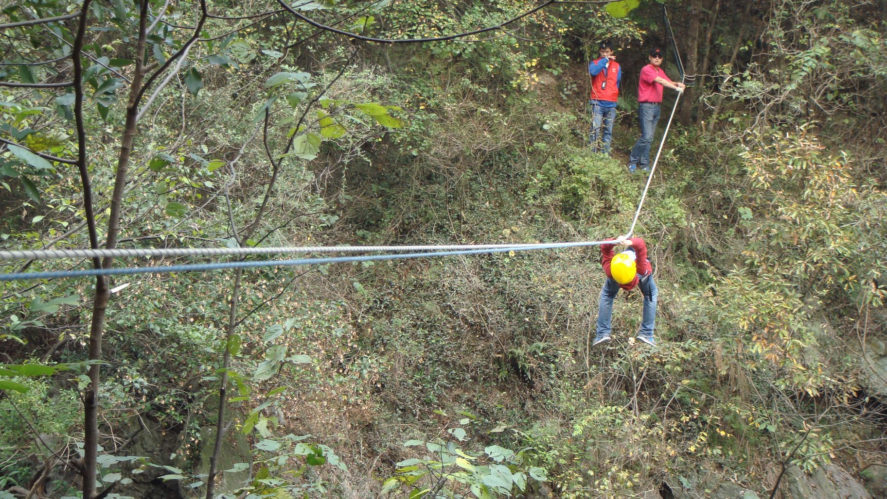 ??? 經(jīng)過一晚的休整,隊(duì)員們迎來了第二天的野外拓展活動(dòng)。搭索過澗、攀巖、巖降、叢林穿越……一系列的拓展項(xiàng)目,不僅考驗(yàn)了隊(duì)員們的體力、耐力和身體協(xié)調(diào)性,更考驗(yàn)了他們的勇氣與心理。
