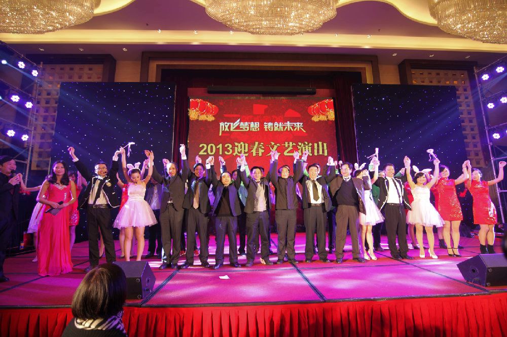 ??? 總結(jié)表彰大會(huì)結(jié)束后,一臺(tái)異彩紛呈的迎春文藝演出拉開了帷幕。喜氣熱鬧的《東方鼓韻》,寓意著新一年的奮進(jìn)與收獲;頗具詼諧意味的舞蹈《江南STYLE》,引得現(xiàn)場(chǎng)爆發(fā)出陣陣掌聲和笑聲;三曲經(jīng)典老歌匯成的情歌串燒,則喚起了現(xiàn)場(chǎng)觀眾對(duì)經(jīng)典的美好回憶。文藝演出在《新年快樂》的歌聲里落幕。