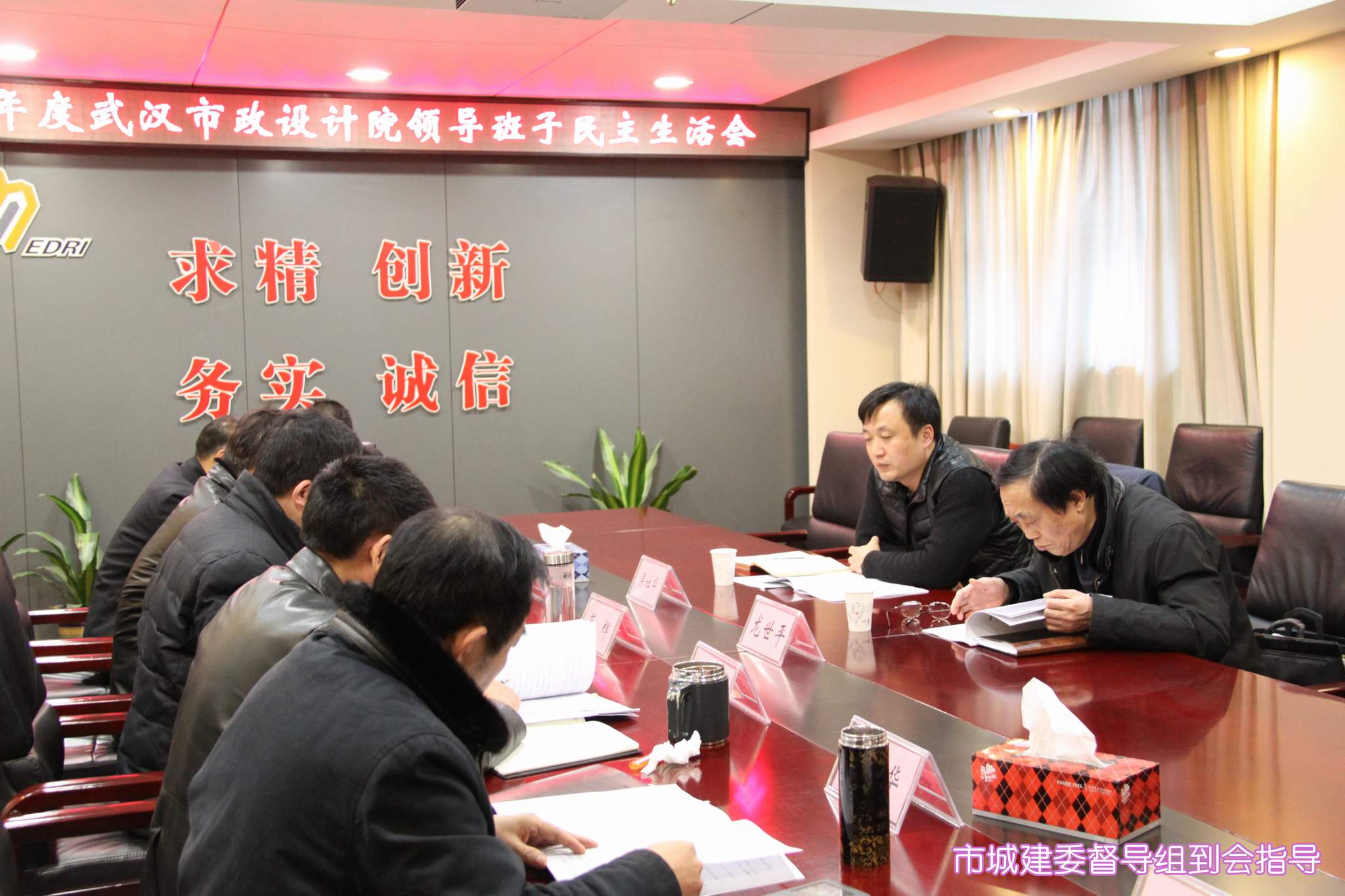 ??? 按照市城建委的安排和部署,2月5日下午,公司領(lǐng)導(dǎo)班子召開(kāi)2014年度民主生活會(huì),市城建委督導(dǎo)組組長(zhǎng)、總工程師龍世平和督導(dǎo)組成員吳社華出席并指導(dǎo)了會(huì)議,黨委書(shū)記蔡輝主持會(huì)議,并代表公司黨委作對(duì)照檢查并作總結(jié)講話,公司領(lǐng)導(dǎo)班子成員逐一作對(duì)照檢查,開(kāi)展批評(píng)與自我批評(píng)。
