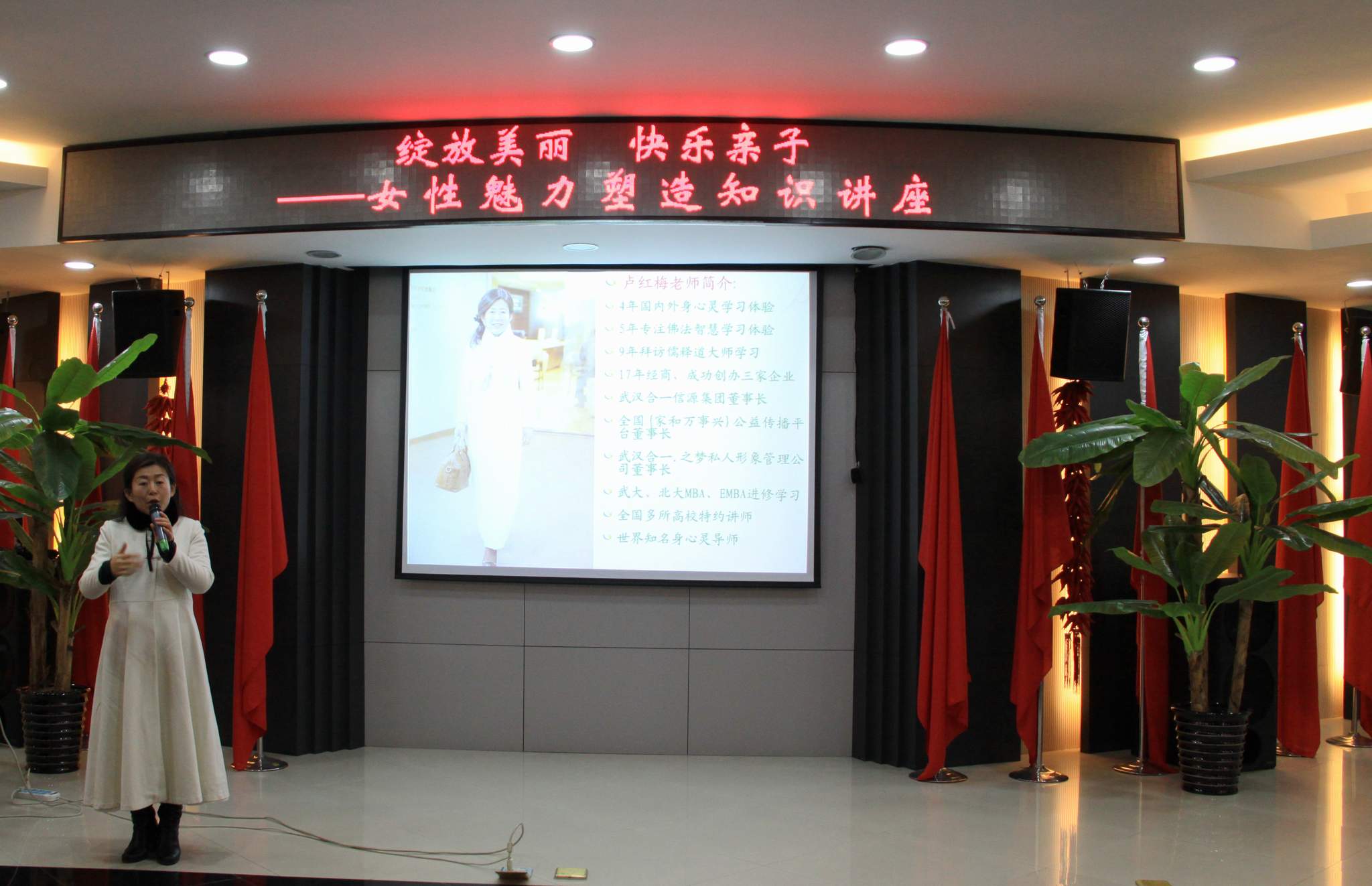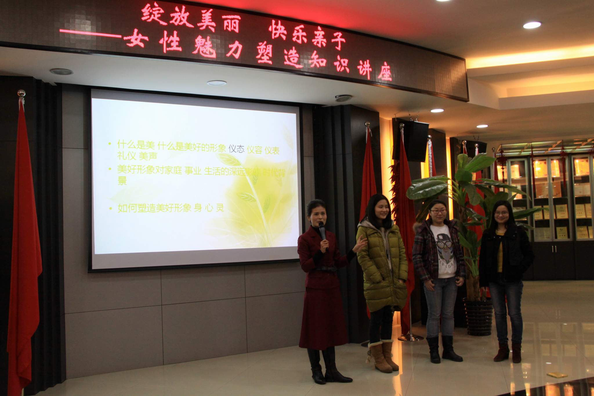 ??? 3月6日,為慶祝“三八”國際婦女節(jié),公司在二樓會議室開展了以“綻放美麗,快樂親子”為主題的女性魅力塑造知識講座,邀請了合一信源集團創(chuàng)始人、全國“家和萬事興”公益?zhèn)鞑ブ髦v師盧紅梅女士親臨授課,為公司女員工送上了一份溫馨的節(jié)日禮物,公司主要領(lǐng)導(dǎo)和全體女員工參加了講座。