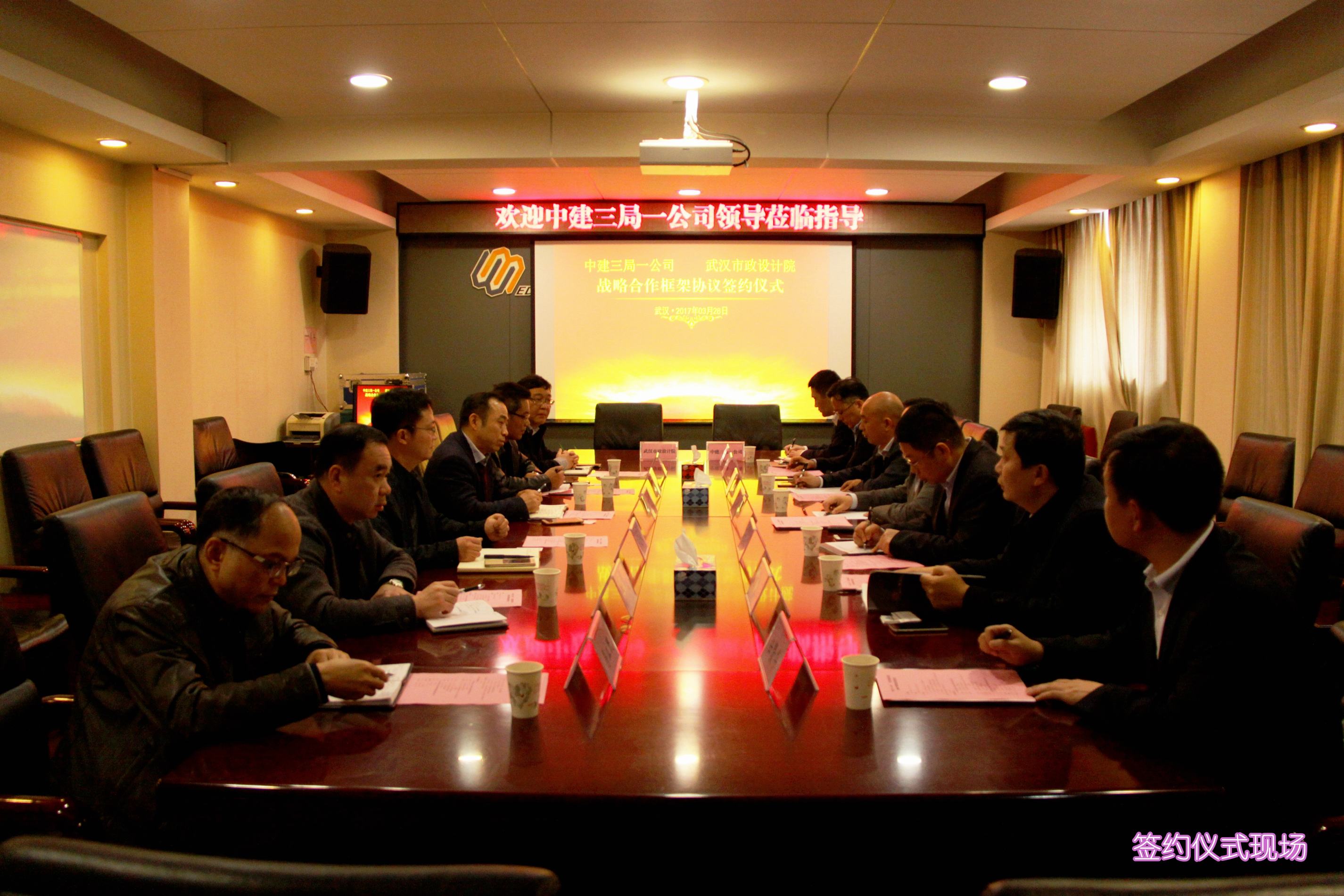 ??? 3月28日,公司與中建三局一公司“戰(zhàn)略合作框架協(xié)議”簽約儀式在公司西三樓會(huì)議室舉行,中建三局一公司黨委書記、總經(jīng)理吳紅濤,副總經(jīng)理萬大勇,司鵬飛、夏元云等參加了簽約儀式。