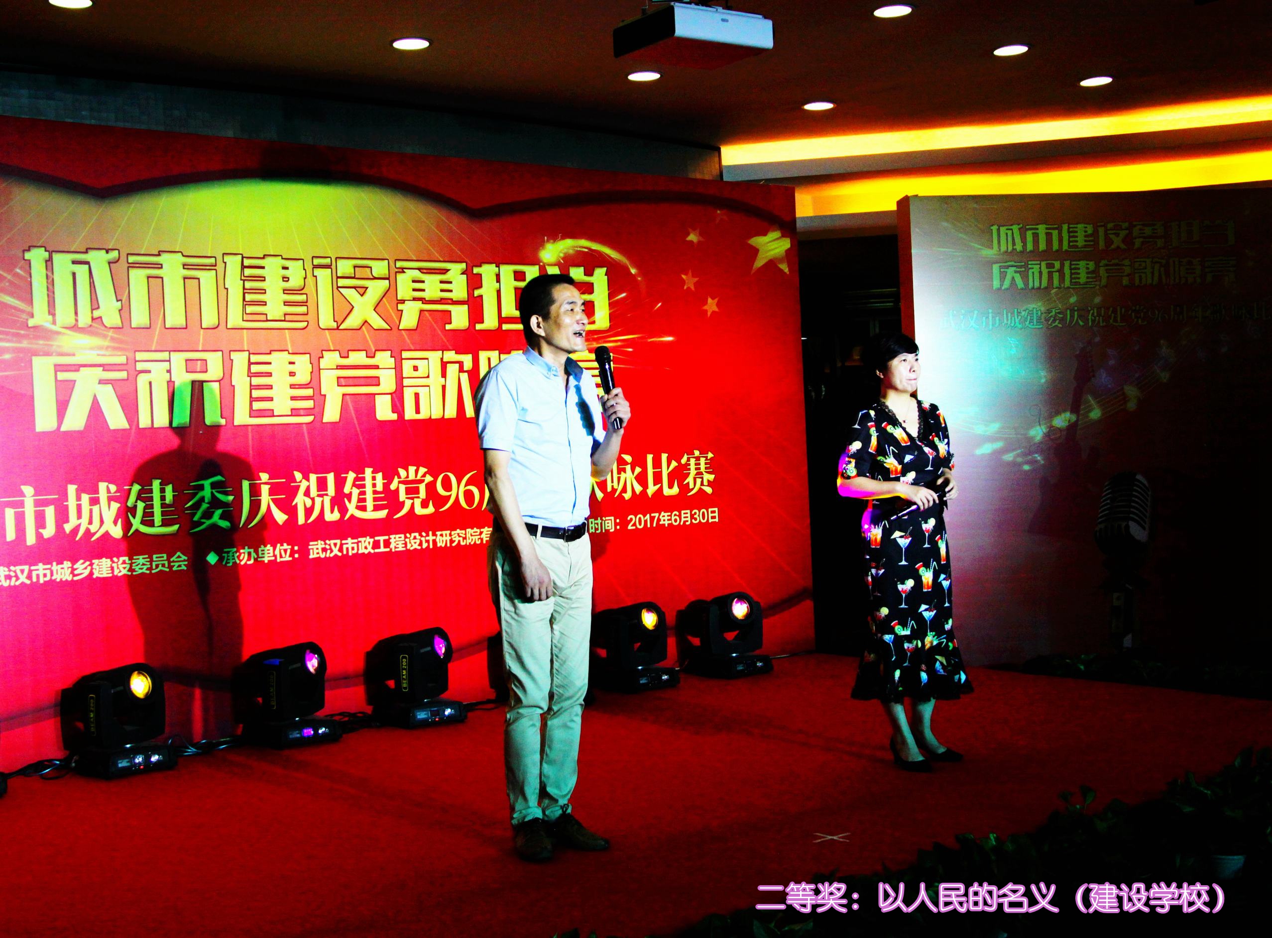 ??? 最終,公司員工張智演繹的歌曲《我愛祖國的藍(lán)天》榮獲了本次比賽的二等獎,一等獎被建筑質(zhì)監(jiān)站的合唱《沂蒙頌》奪得,陳勁超等領(lǐng)導(dǎo)分別為獲獎?wù)哳C獎,并合影留念。
