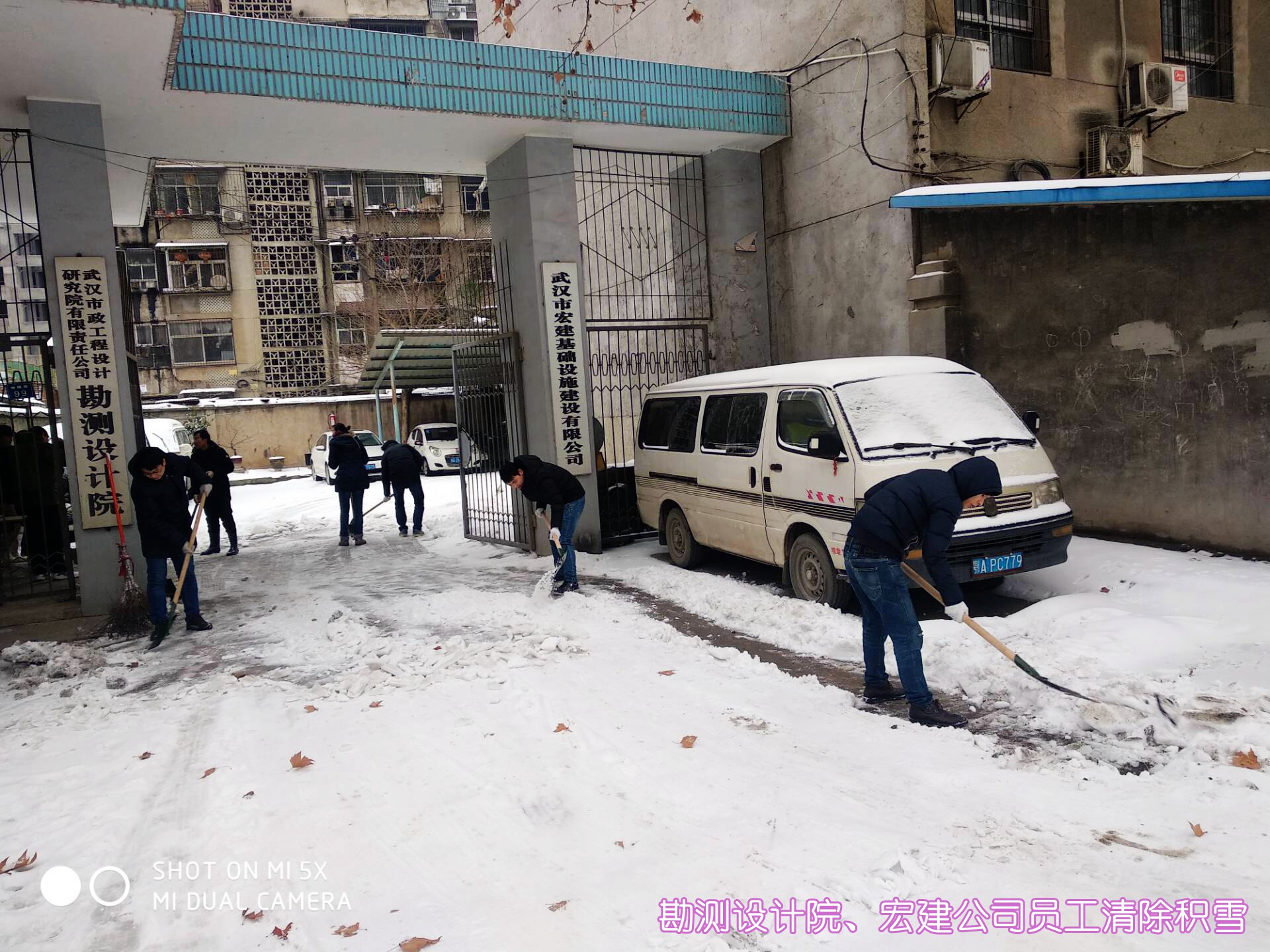 ??? 為了保證掃雪除冰行動(dòng)形成合力,員工們積極參加了市城建委、常青街、賀家墩社區(qū)的除冰活動(dòng),協(xié)助相關(guān)單位完成清雪除冰任務(wù)。公司所屬東湖設(shè)計(jì)院、經(jīng)濟(jì)開發(fā)區(qū)設(shè)計(jì)院、路源公司、勘測設(shè)計(jì)院、宏建公司等駐外部門也對(duì)所在駐地周邊冰雪進(jìn)行了鏟除。