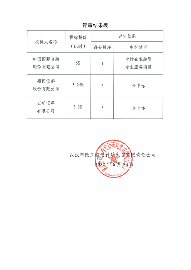 關(guān)于企業(yè)融資專業(yè)服務(wù)項(xiàng)目招標(biāo)結(jié)果的公示