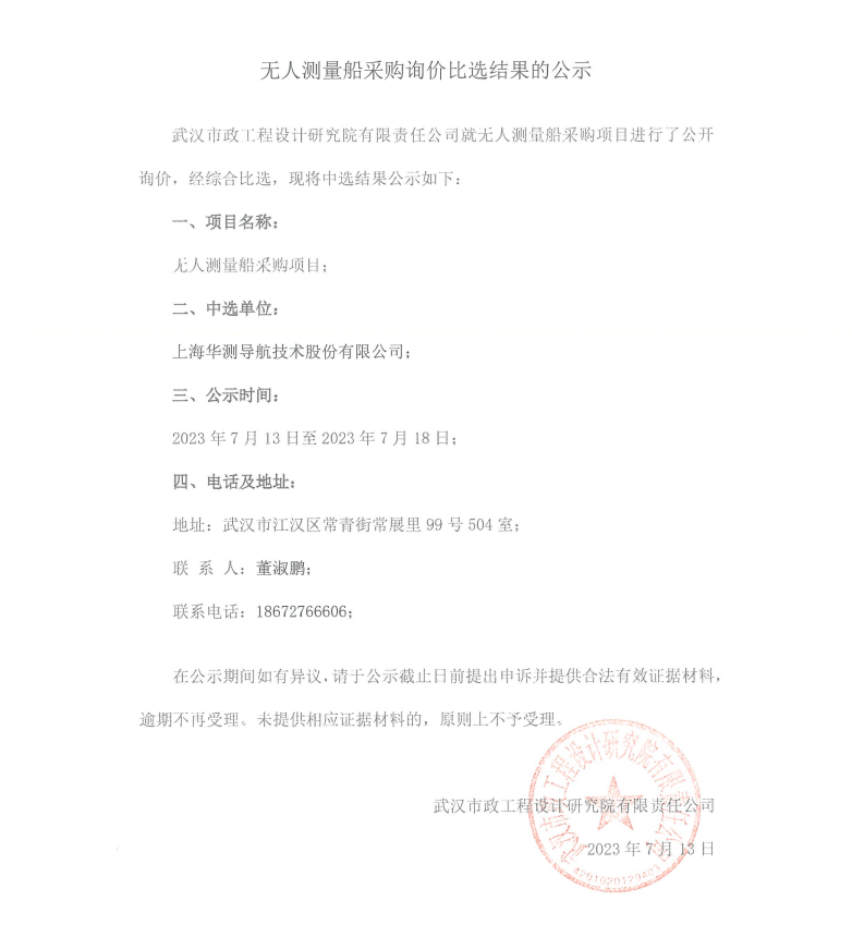 無(wú)人測(cè)量船采購(gòu)詢(xún)價(jià)比選結(jié)果的公示